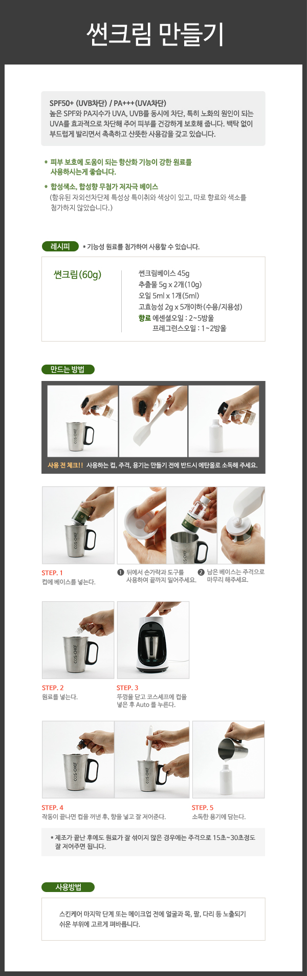 썬크림 만들기 > 코스셰프 미니 화장품 제조 방법
