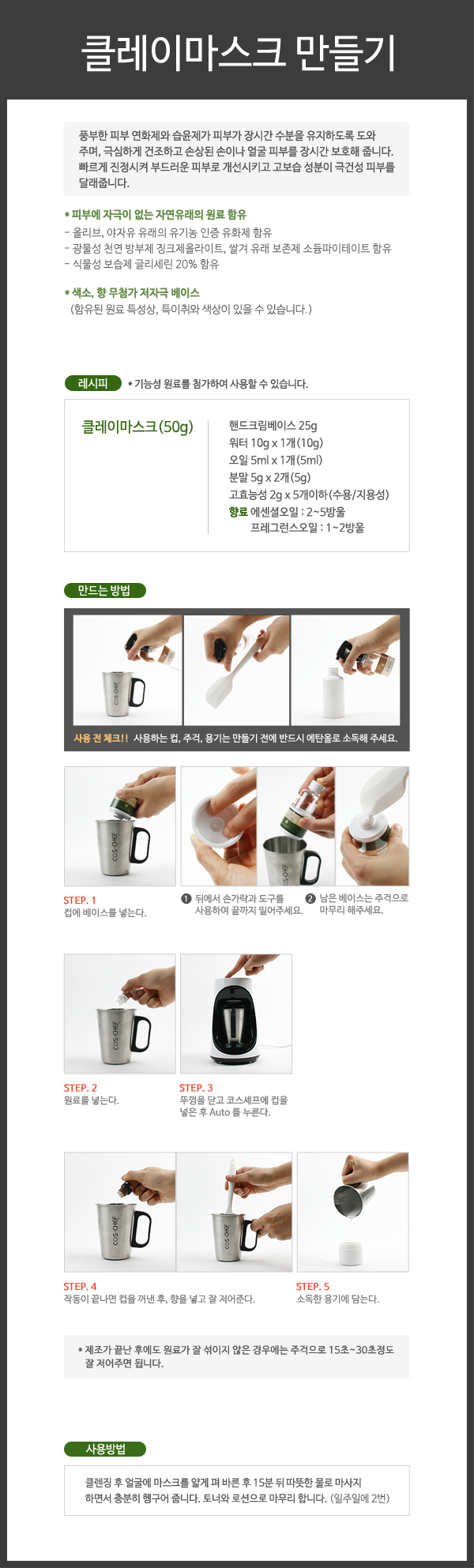 클레이마스크 만들기 > 코스셰프 미니 화장품 제조 방법