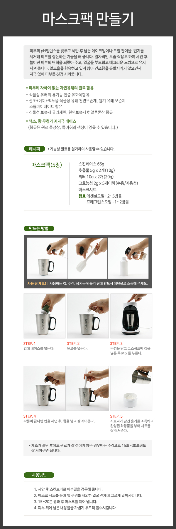마스크팩 만들기 > 코스셰프 미니 화장품 제조 방법