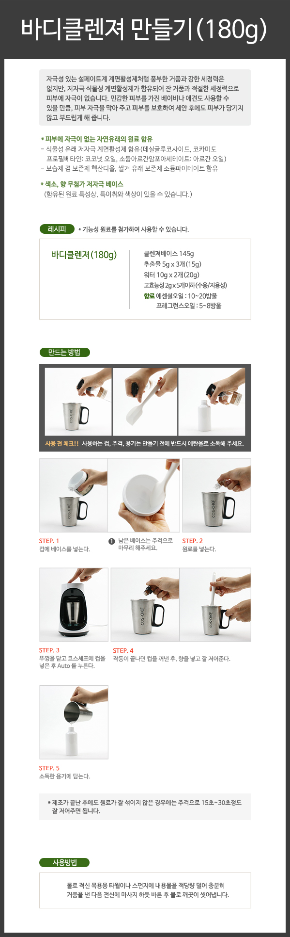 바디클렌져 만들기(180g) 페이지 정보 작성자 최고관리자 작성일16-05-02 15:05 조회11,105회 댓글0건 본문 바디클렌져 만들기(180g) 댓글목록 등록된 댓글이 없습니다.