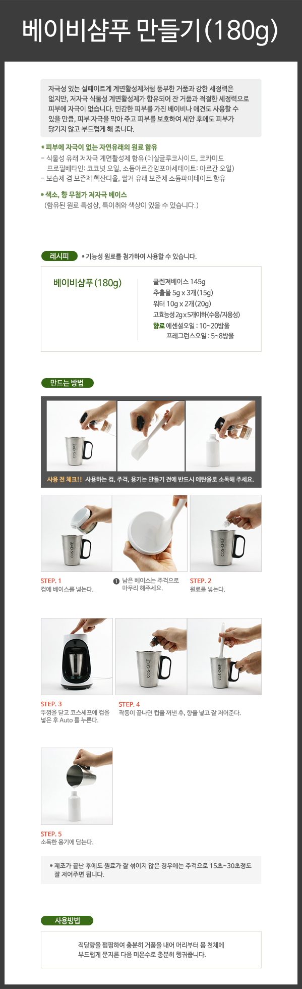 베이비샴푸 만들기(180g) 페이지 정보 작성자 최고관리자 작성일16-05-02 15:06 조회11,139회 댓글0건 본문 베이비샴푸 만들기(180g) 댓글목록 등록된 댓글이 없습니다.