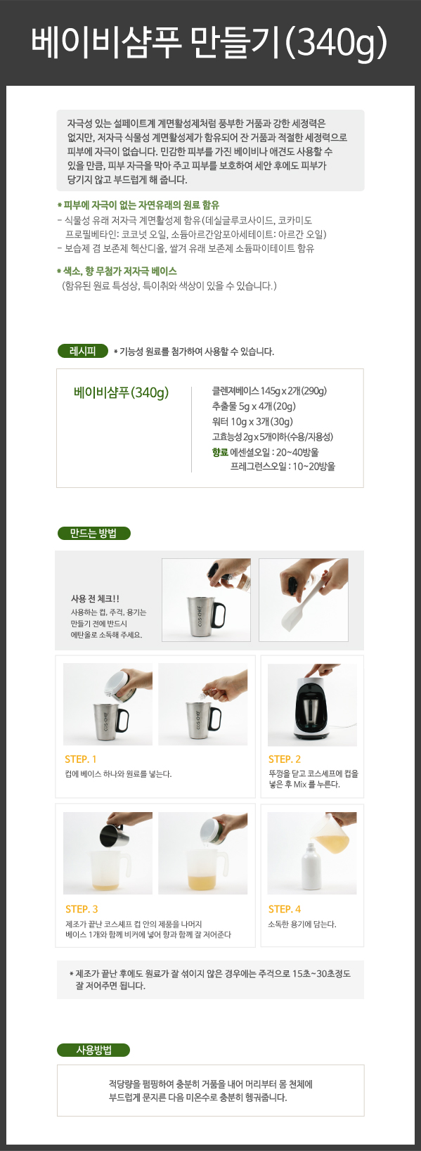 베이비샴푸 만들기(340g) 페이지 정보 작성자 최고관리자 작성일16-05-02 15:06 조회11,126회 댓글0건 본문 베이비샴푸 만들기(340g) 댓글목록 등록된 댓글이 없습니다.