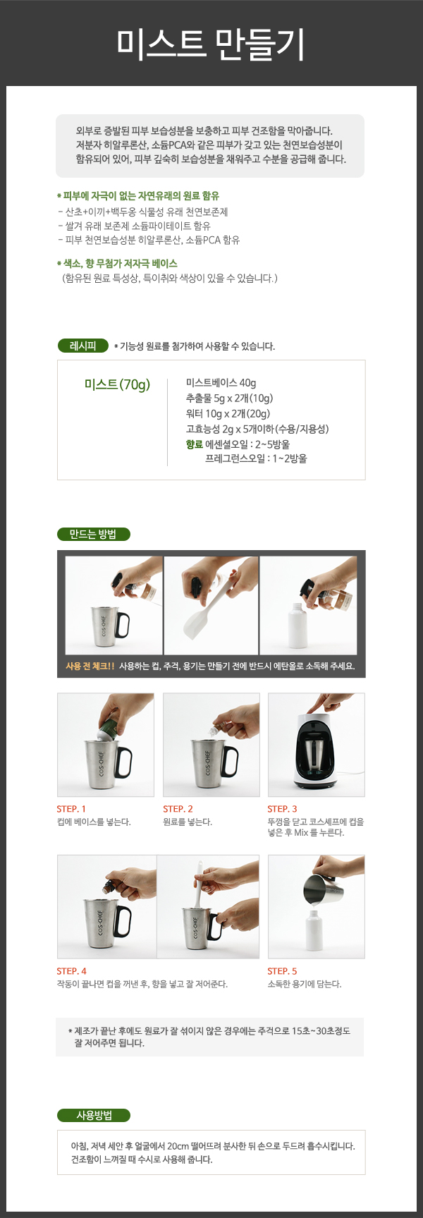 미스트 만들기 > 코스셰프 미니 화장품 제조 방법