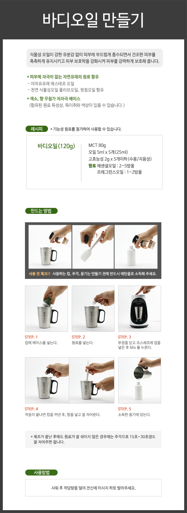 바디오일 만들기 > 코스셰프 미니 화장품 제조 방법