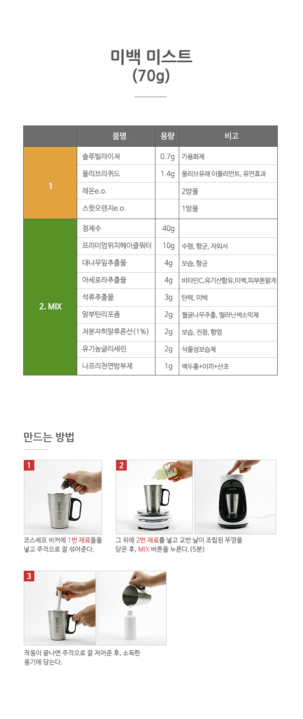 미백 미스트 만들기 > 원료를 계량해서 만드는 레시피