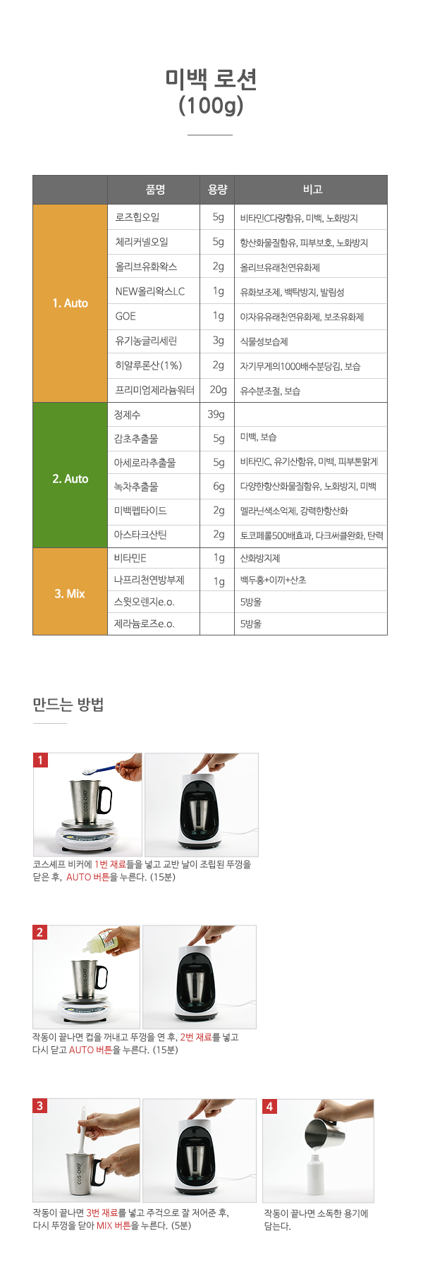미백 로션 만들기 > 원료를 계량해서 만드는 레시피