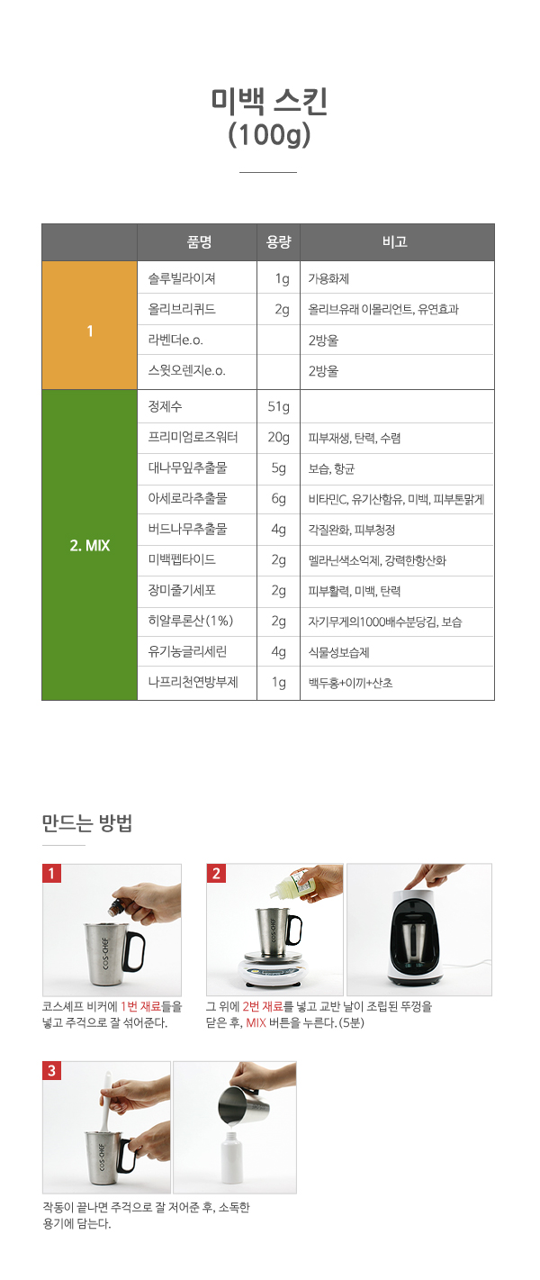 미백 스킨 만들기 > 원료를 계량해서 만드는 레시피